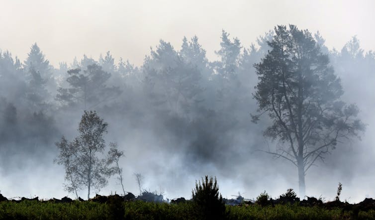 Thick smoke rises from a peat bog fire in June 2023. Bernd Wüstneck/picture alliance via Getty Images